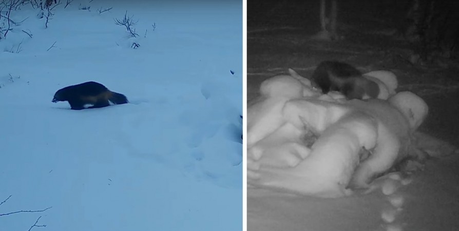 В Лапландском заповеднике фотоловушка засняла росомах. Отмечается, что животные попали в кадр впервые в новом году.