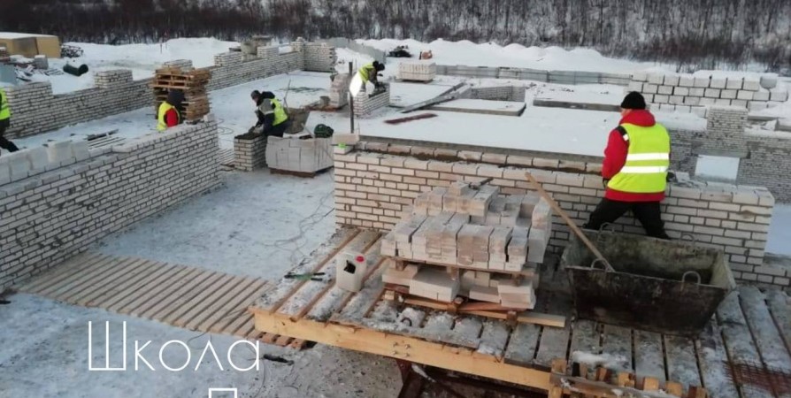 На строительстве школы в Печенге завершены работы по устройству монолитного пояса и фундаментной плиты под резервуар.