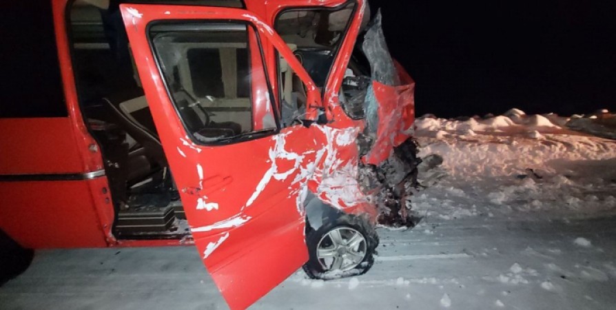 По предварительной информации водитель микроавтобуса выехал на встречную полосу движения, где совершил столкновение с рейсовым автобусом.