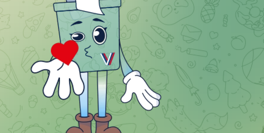 В наборе 10 вариантов избирательной урны с ногами. Она посылает сердечки, показывает знак «класс», смеется, стесняется и сердится.