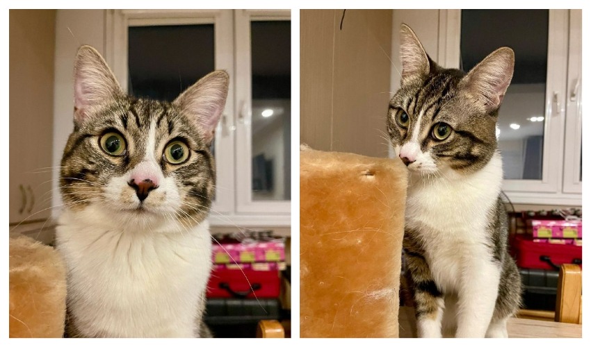 Обе кошки были забраны из квартиры одинокой 81-летней бабушки. И Вишня, и Мика были истощены и находились в не очень хорошем состоянии.