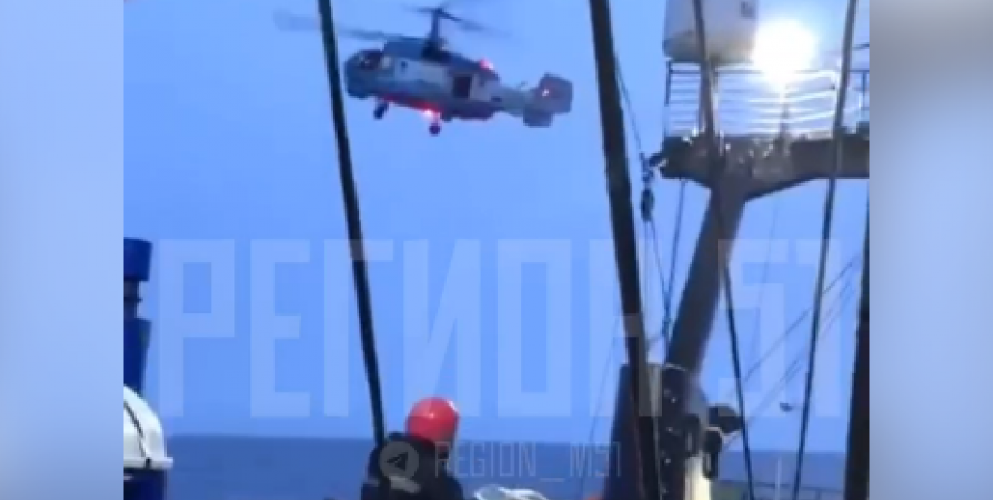 В соцсетях распространилось видео с задержанием рыболовецкого судна. На записи, опубликованной в telegram-канале «Регион 51», видно, что над бортом находится вертолёт, который требует подчиниться.