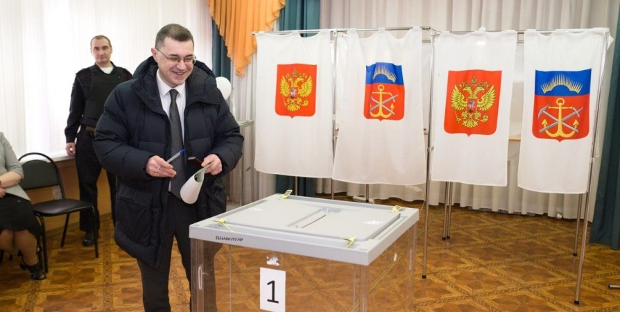 Глава Мурманска Игорь Морарь отдал свой голос на выборах президента России на избирательном участке № 68.