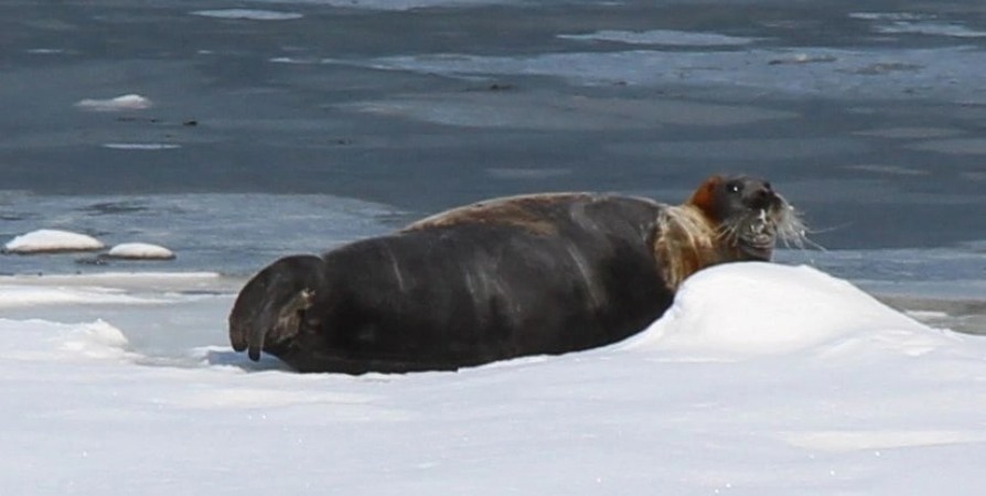 Но все-таки она приплыла. Животному было не очень комфортно лежать на тонкой льдине, но она, словно давая людям время рассмотреть себя, какое-то время погрела бока под робкими лучами солнца.