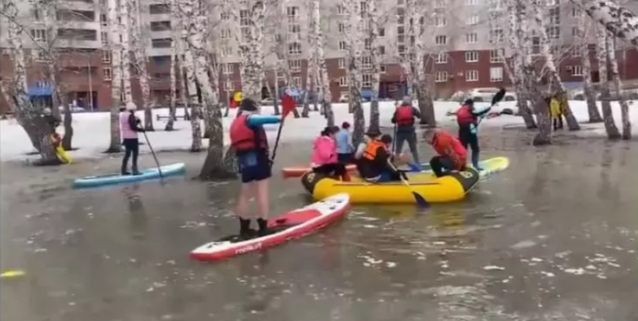 Жители Омска устроили заплыв на лодках в огромной луже. Как пишет gorod55.ru, водоем образовался во дворе дома № 21/2 на улице Комарова. Длина и ширина лужи превышает 10 метров, в ней смогли одновременно разместится несколько сап-бордов и один многоместный рафт. Кадры заплыва уже опубликованы в Сети.
