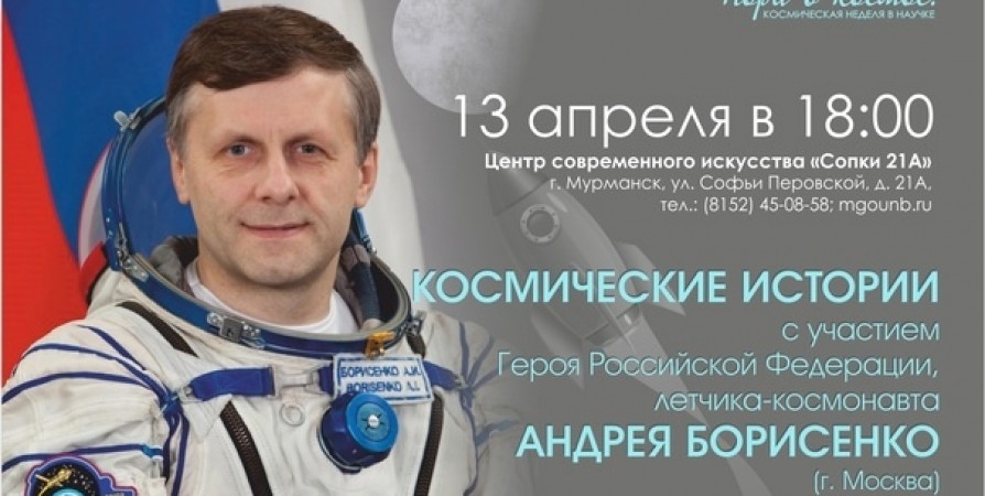 В Центре современного искусства «Сопки 21А» состоится познавательная программа «Космические истории» с участием летчика-космонавта, Героя России Андрея Борисенко (Москва) 13 апреля.