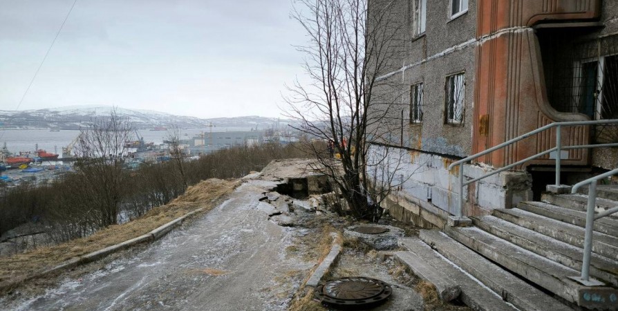 Из-за выхода воды после аварии на трубопроводе холодного водоснабжения в Мурманске разрушился участок дороги на ул. Маяковского возле дома №21.