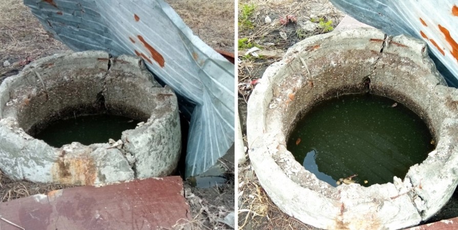 Она добавила, что канализационные колодцы наполнены жижей, грунт около них проваливается, а сам колодец лишь прикрыт куском железа.