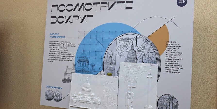 Для создания экспозиции библиотека в рамках сотрудничества с Центробанком адаптировала работы из серии «Посмотрите вокруг» для незрячих и слабовидящих людей.