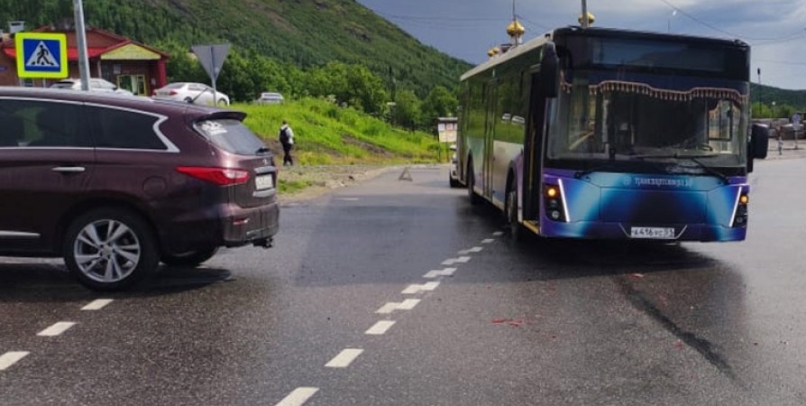 Пассажирский автобус, следовавший по маршруту №131, и автомобиль Infinity столкнулись сегодня на кольце при въезде в Кировск, сообщает «ХибИнформБюро».