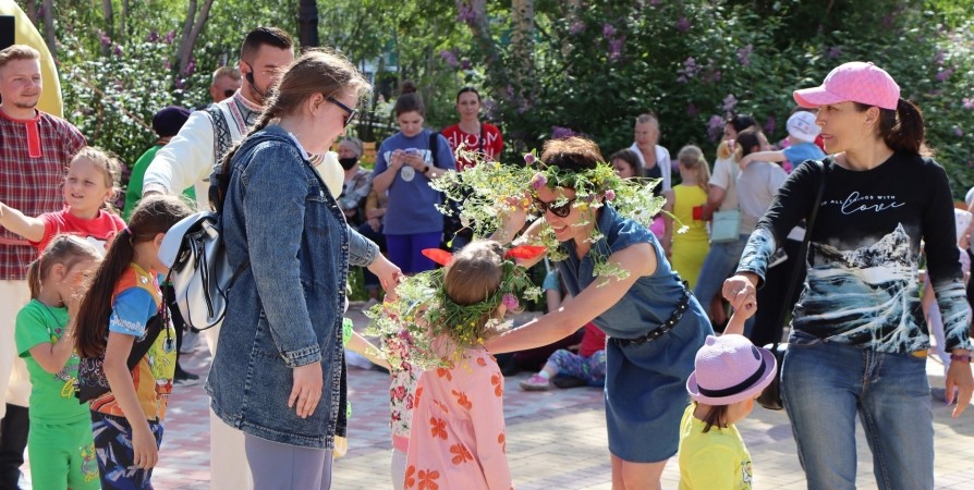 В программе - показ сценических костюмов в русском народном стиле, народные игры, хороводы и забавы, мастер-класс по плетению венков из полевых цветов.