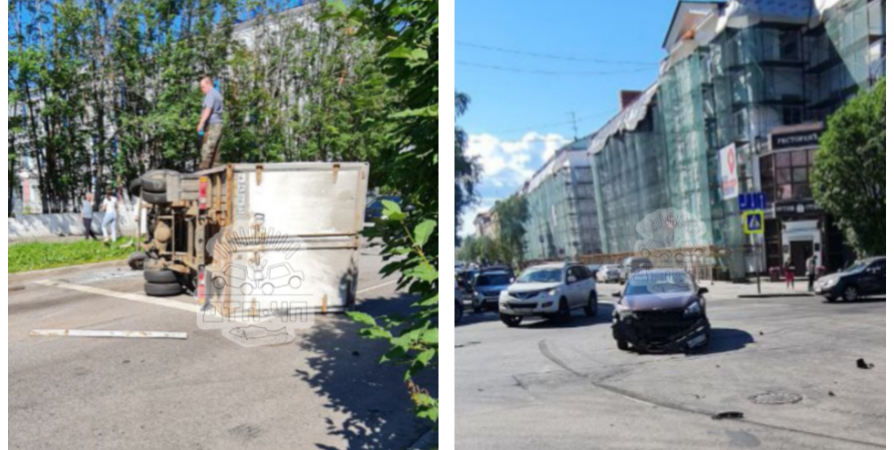 На снимках, опубликованных в канале «ДТП ЧП Мурманск» видно, что от столкновения опрокинулся грузовой автомобиль. Пострадал также автомобиль Henday.