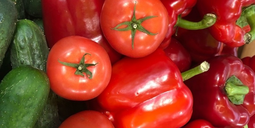 Необходимые ингредиенты: 1кг огурцов, 0,5кг помидоров, 300 грамм болгарского перца, 90 грамм сахара, 40 грамм соли, 50 грамм растительного масла, 50 мл уксуса (9%) и 2 зубчика чеснока.