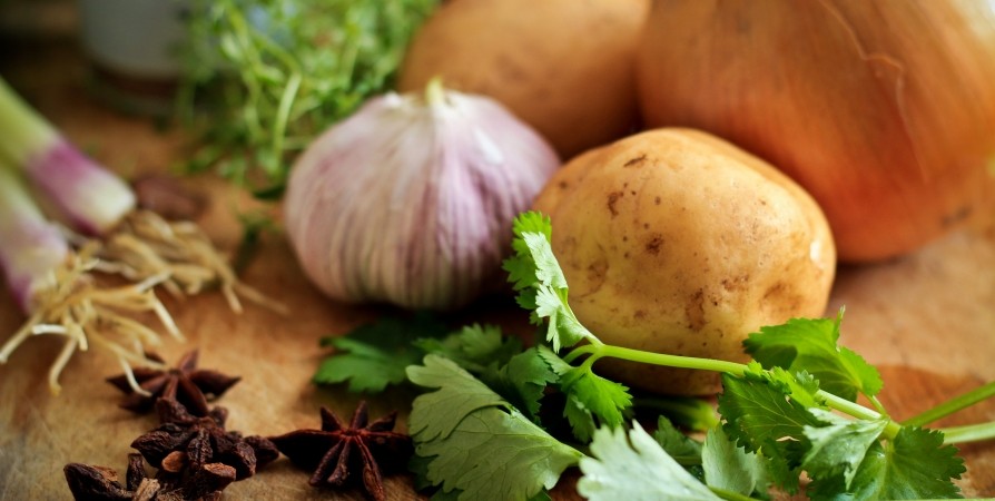 Например, к отварной картошке советуем добавить куркуму, она придаст блюду приятный жёлтый оттенок. Это особенно хорошо для пюре. В воду можно также добавить чеснок, он сделает картофель более плотным, или лавровый лист. При подаче вместо укропа можно добавить кинзу, петрушку или базилик.