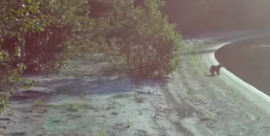 На видео росомаха «прогуливается» по берегу водоема. Животное пробегает сначала в одну, потом в другую сторону, а под конец, словно специально позируя, замедляет шаг и даже ненадолго останавливается.