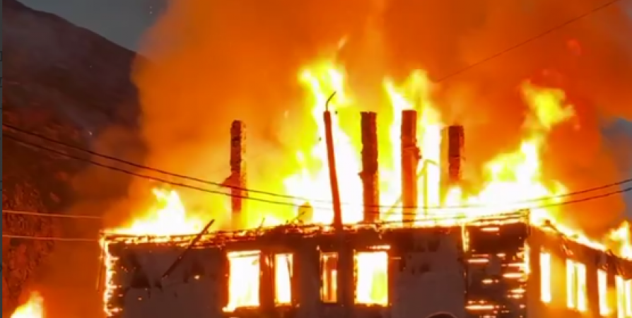 Почти 5 часов потребовалось спасателям, чтобы потушить крупный пожар, который произошел сегодня ночью в Териберке.