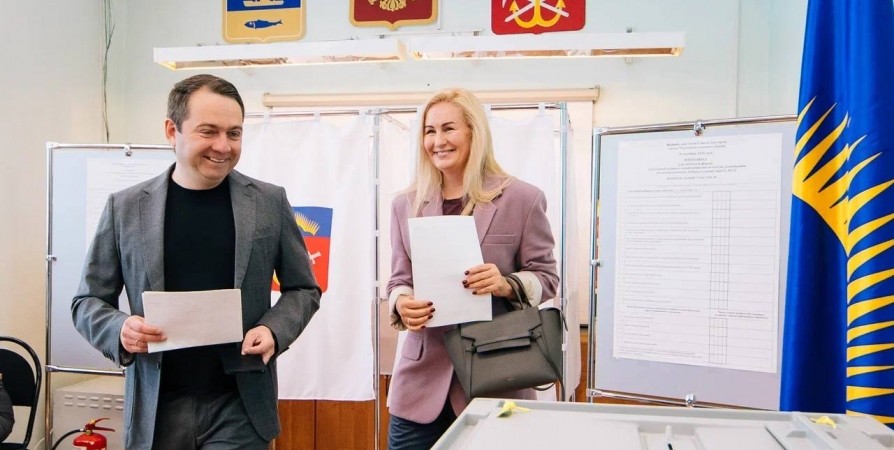 Губернатор Мурманской областью Андрей Чибис проголосовал на выборах главы региона вместе с супругой.