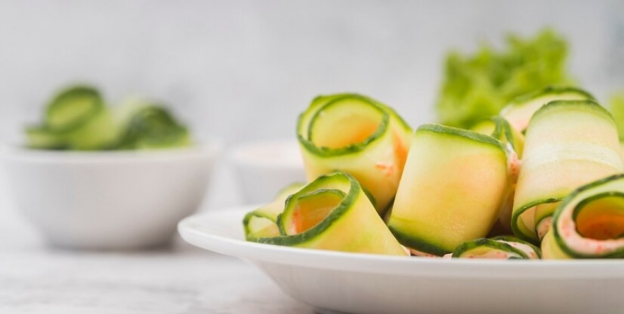 Шаг 1. Хорошо промойте кабачки и удалите кожуру. Овощи нужно нарезать на тонкие слайсы. Затем отправляем ломтики вялиться в сушилке. Кабачки должны остаться гибкими, не нужно сушить их до состояния сухарей.