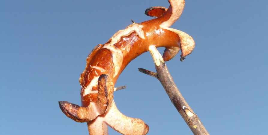 Надрезы нужно делать именно с концов. Если надрезать шкурку вдоль, то ждёт полное фиаско — сарделька просто треснет!