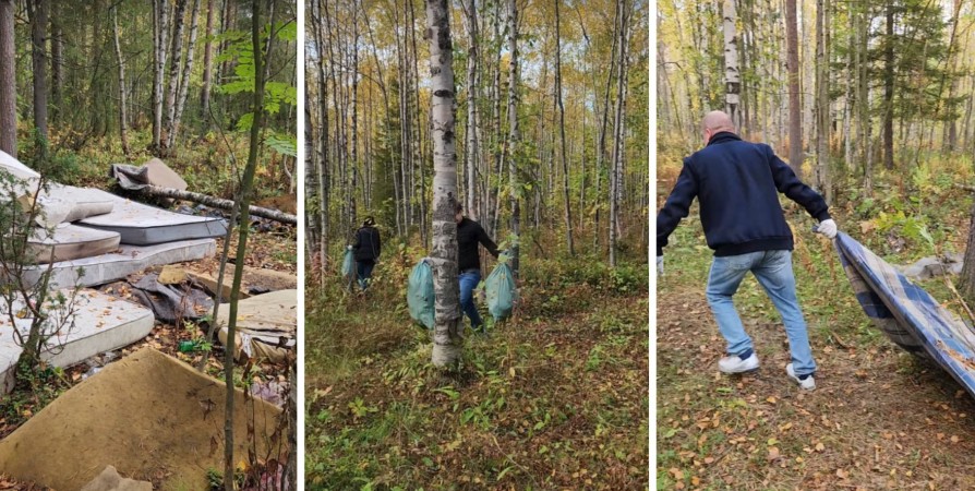 Лесопарк «Любкино болото» в Апатитах очистили от свалки. На внеплановый субботник вышли сотрудники отдела муниципального контроля администрации города, спасатели и руководители ЕДДС и Службы гражданской защиты Апатитов.