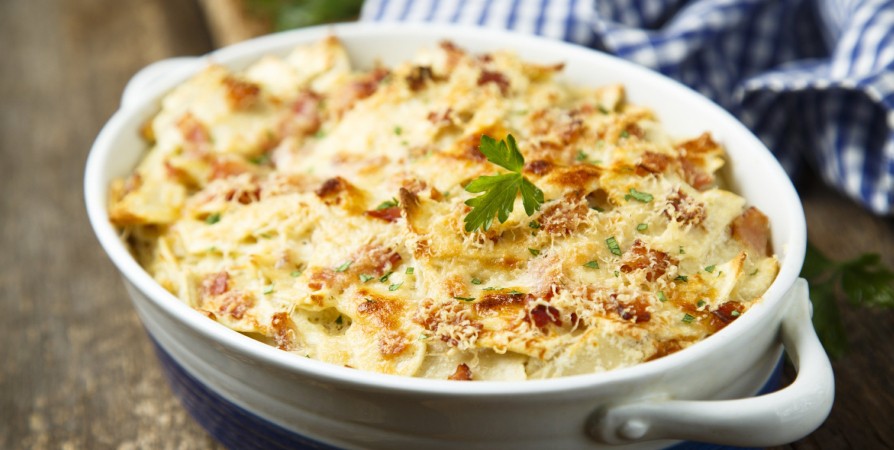 Отправляем в духовку 200 градусов на 25 минут. За это время натираем сыр, добавляем яйцо. Распределяем по запеканке и снова убираем в духовку на 10 минут. При подаче посыпаем луком и нарезаем на кусочки. Обязательно попробуйте — получается экономно и эффективно.
