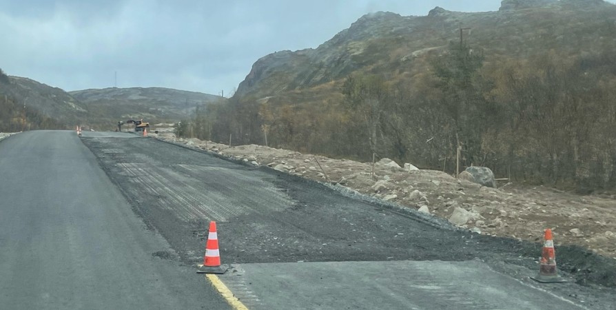 Жители Териберки гадают, куда мог пропасть новый асфальт с дороги. После укладки несколько сотен метров на ширине одной полосы были срезаны.