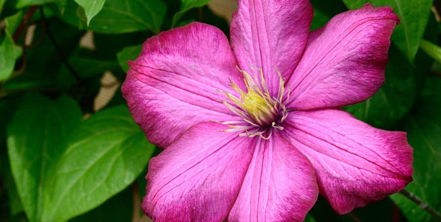Яркие цветы и пышная зелень клематиса способны привлечь внимание и добавить в окружающее пространство нотки красоты