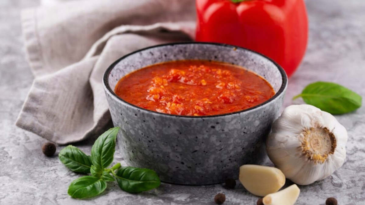 Чтобы приготовить 4 литра такого вкусного грузинского соуса по старинному рецепту, нужно: 4 кг сладкого перца, 1 кг острого перца, 400 г чеснока, 1 пучок петрушки, 80 г соли, 0,5 стакана сахара, 200 мл 9% уксуса.