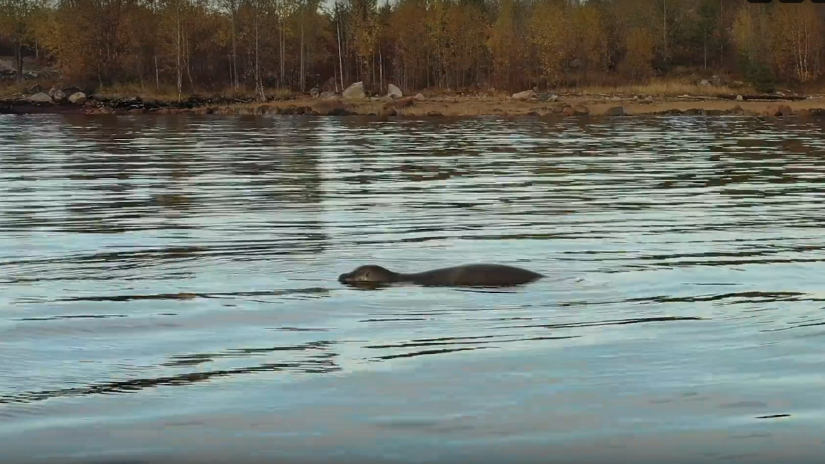 К берегу залива в Кандалакше приплыл морской заяц. Видео опубликовано в сообществе «ДубльДом Кандалакша и А-фрейм Крестовая» соцсети ВК.