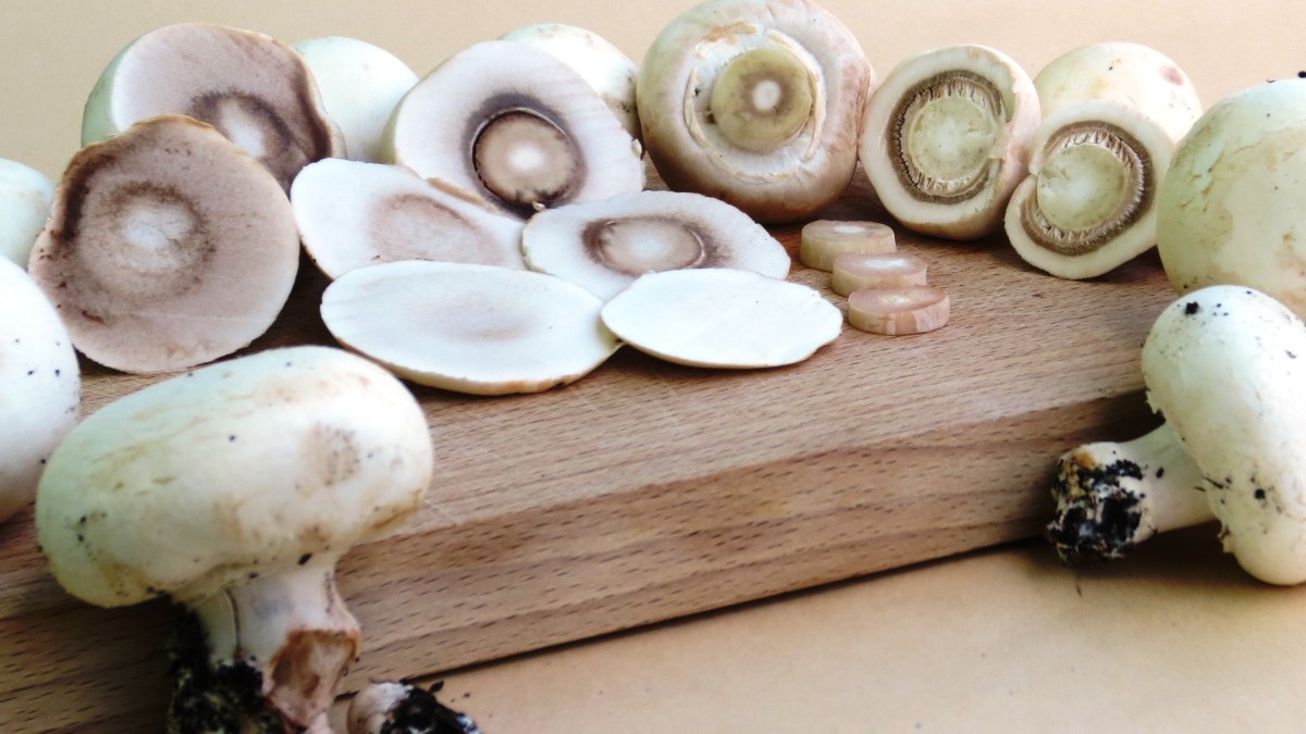 Итак, начинаем готовить. Для начала моем и режем шампиньоны (если они сильно крупные) на четыре части. далее жарим на предварительно разогретой сковородке. Жарим несколькими партиями до золотистого цвета. Далее перекладываем их в миску.
