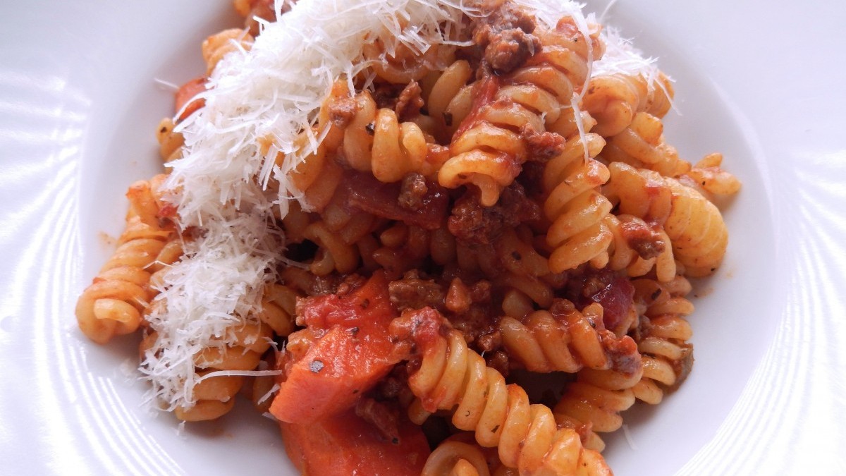 Этот вариант приготовления напоминает итальянскую пасту с томатным мясным соусом «Болоньезе», но на вкус оно совсем другое. Помидоры не входят в его состав, зато возможны любые другие добавки — зелень, зелёный лук, перец, грибы.