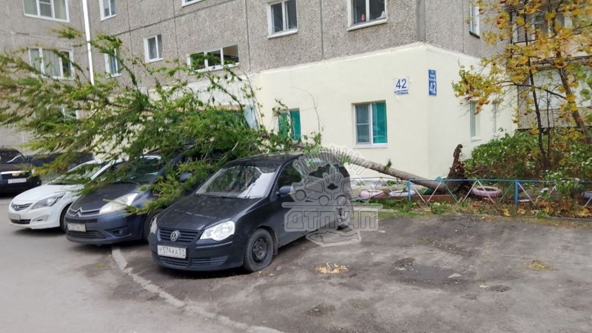 Аналогичное происшествие случилось в одном из дворов на улице Героев Рыбачьего — там хвойное дерево обрушилось прямо на стоявший рядом автомобиль.