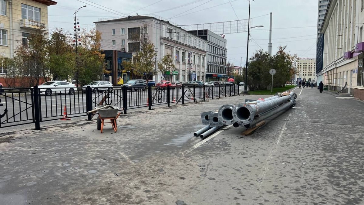 В Мурманске на перекрёстке проспекта Ленина и улицы Профсоюзов вновь начали возводить забор.