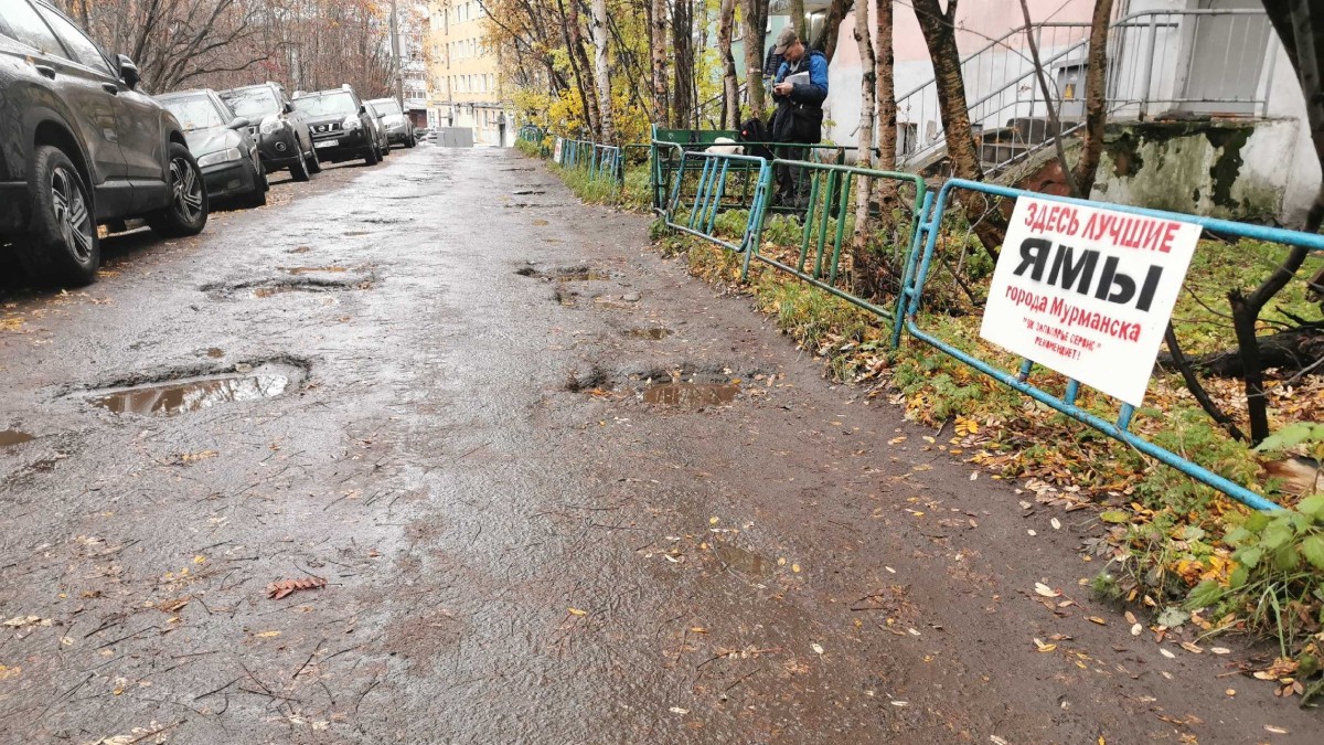 В Мурманске на улице Полярные Зори обнаружили «лучшие ямы» города. Об этом сообщают плакаты, фотографии которых на своей странице ВК опубликовал мурмачанин Дмитрий Новицкий.