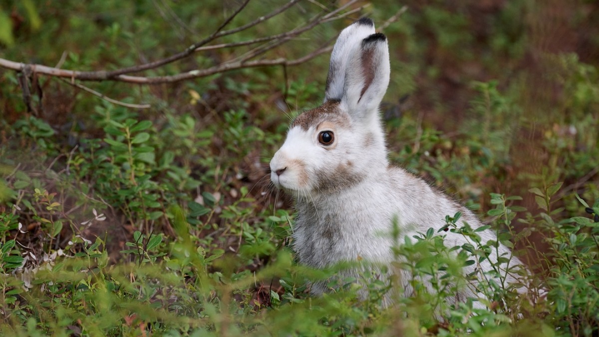 В объектив фотоловушки, установленной на территории Лапландского заповедника, попал пятнистый зайка, который готовит свою шубку к зиме.