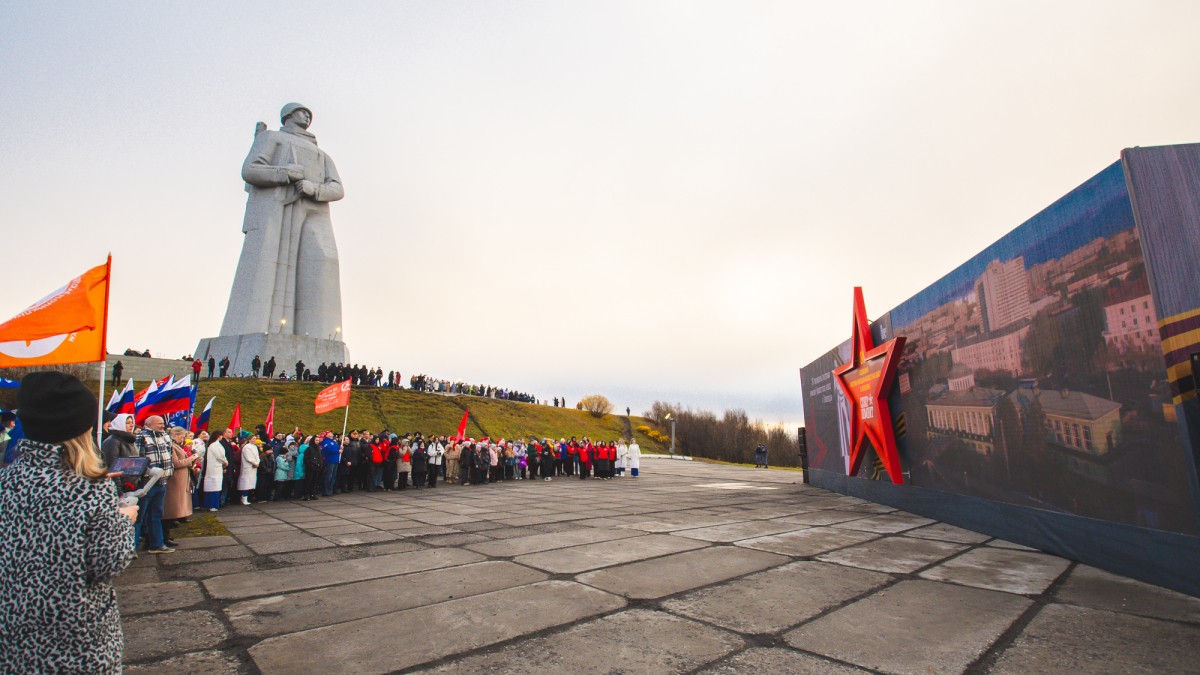 — 80-я годовщина немецко-фащистских войск в Заполярье. Север помнит, — написано на конструкции.