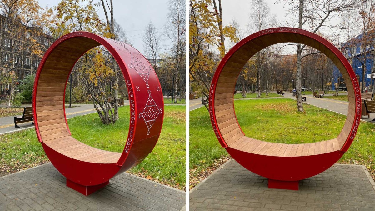 В Мурманске в обновленном сквере возле дома № 33А по проспекту Героев-североморцев установили «скамью дружбы».