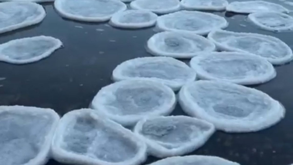 С наступлением осенних холодов река Титовка покрылась белыми блинчиками, которые образуются в результате замерзания смеси снега и мелких льдин.