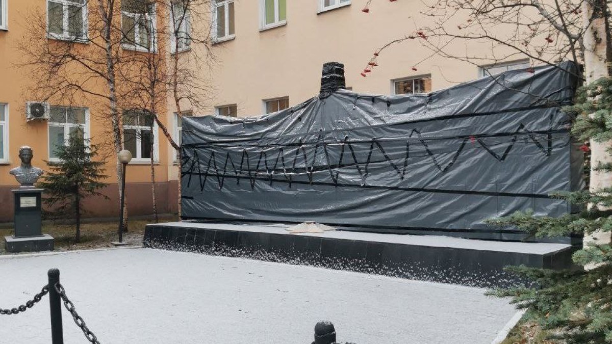 Памятник солдатам правопорядка, погибшим при исполнении служебного долга, и Вечный огонь рядом с ним упаковали в пленку по меньшей мере до лета. Мемориал ждет реконструкция — замена плитки. Соответственно, «законсервирован» монумент до весны, а в летний период будут проведены все необходимые работы.