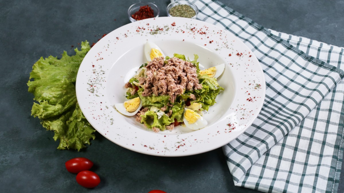 Этот салат содержит много белка, мало жиров и калорий. Лучше всего его употреблять на ужин.
