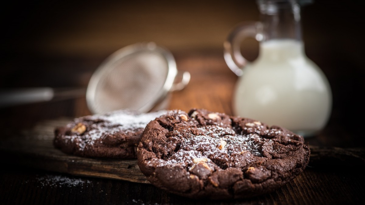 Дайте печенью остыть прямо на пергаменте и снимите с листа. Налейте стакан молока и наслаждайтесь дуэтом вкусов — глубокий шоколадный вкус кусочка печенья смешивается с молоком и начинает таять во рту, вызывая желание откусить еще.