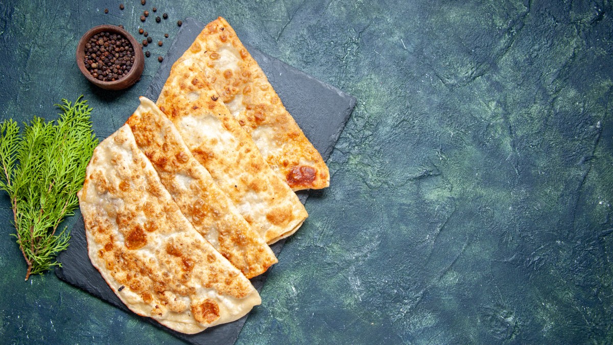 - Вырежьте из лаваша два круга. Положите первый круг на сухую сковороду.