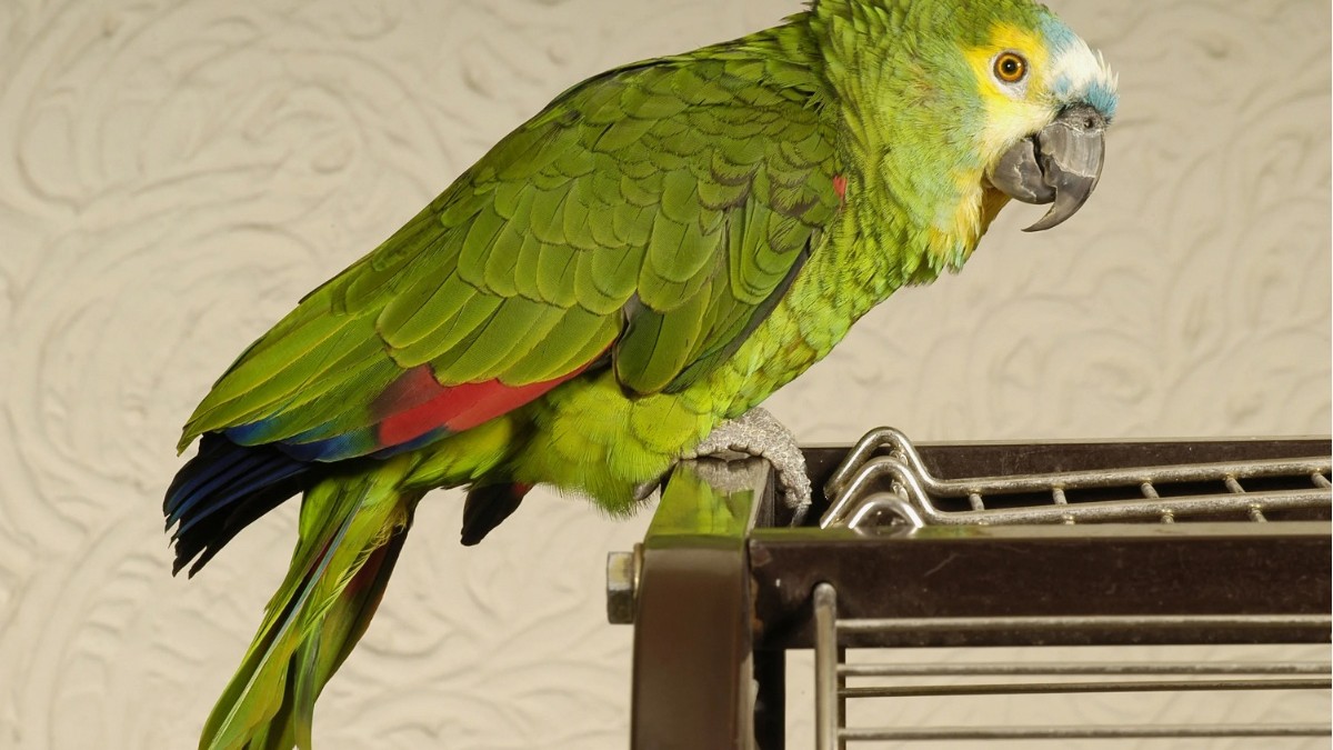 Продавец называет попугая «зеленым демоном» и сообщает, что тот «висит вверх-ногами, сидит на шпагате, кудахчет по утрам как курица». Птица, по словам владельца, не летает из-за обрезанных крыльев, но «лазает везде как обезьяна, только зеленая и злая». У него крепкий «как броня немецкого Panzerkampfwagen V» клюв.