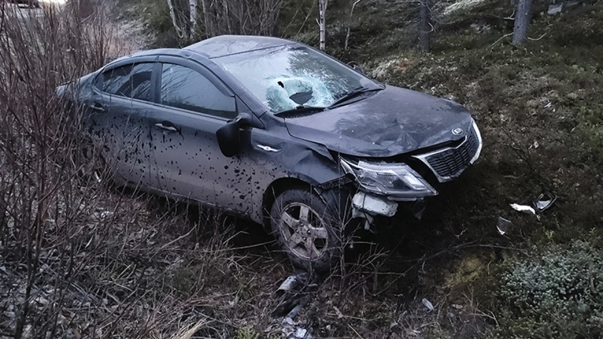 Автомобиль Kia Rio вылетел с трассы на автоподъезде к Апатитам со стороны федеральной трассы «Кола». В 16 км от города водитель зацепил бровку и потеряла управление, сообщает «ХибИнформБюро».