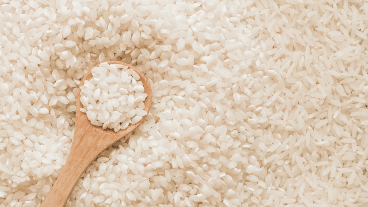 - Отмерьте 1 стакан круглозерного риса и высыпьте его в сотейник.