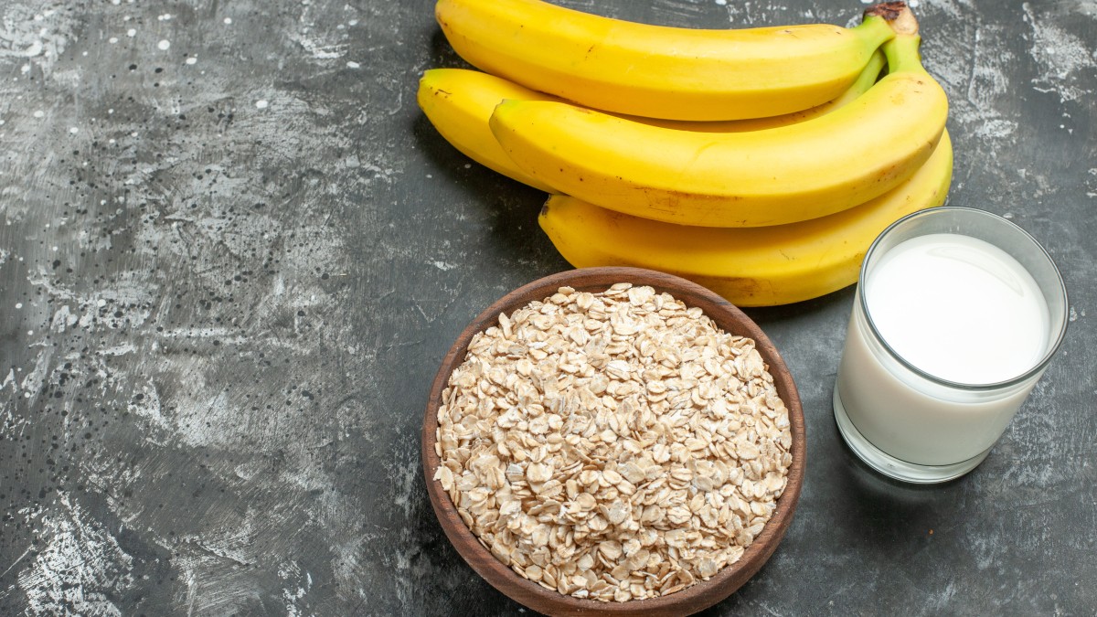 - В миску насыпьте стакан овсяных хлопьев быстрого приготовления, залейте их стаканом горячего молока и оставьте на 10 минут.