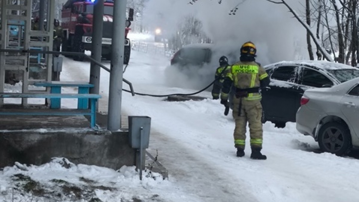 Сообщение о возгорании автомобиля возле четвертого подъезда жилого дома № 25 по улице Бредова поступило по номеру 112 в четверг, 21 ноября. На место пожара оперативно выехали несколько бригад спецслужб, включая пожарный расчет.