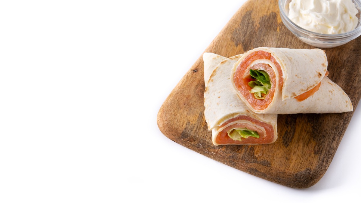 - Сверните лаваш в плотный рулет, заверните в плёнку и отправьте в холодильник на 1–2 часа для пропитки.