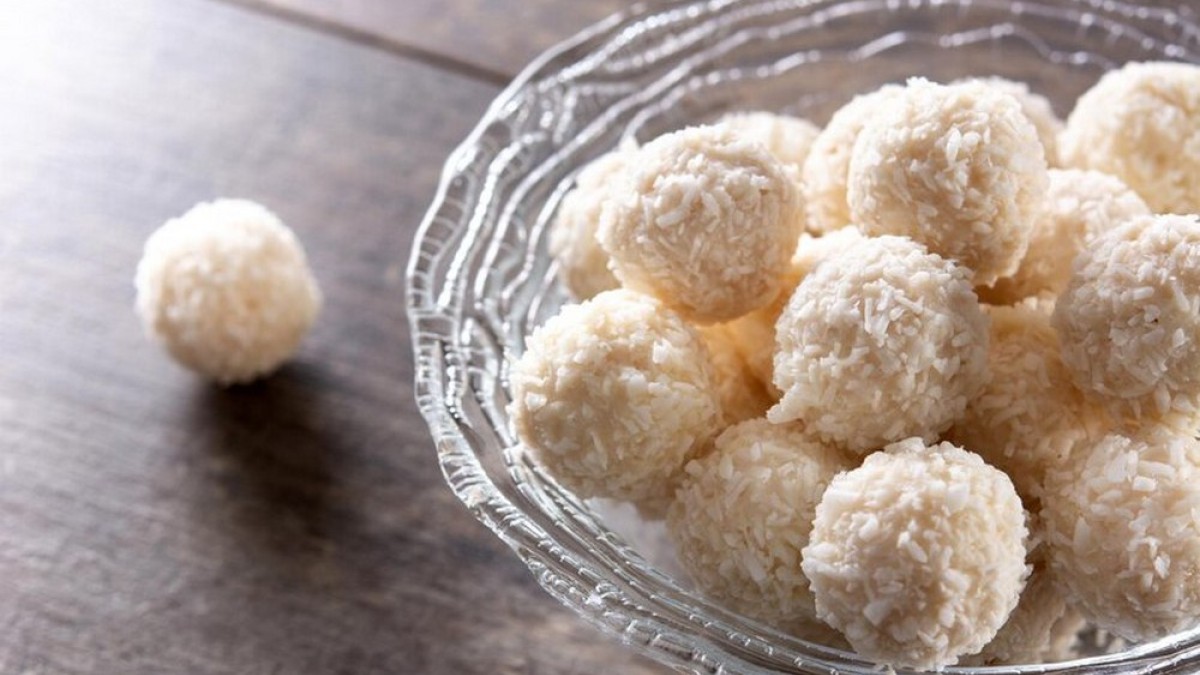 Дома можно сделать аналог популярных кокосовых конфет «Рафаэлло». Это низкокалорийное лакомство, так что пару конфет могут себе позволить даже те, кто находится на диете. Выпекать ничего не придётся, всего 5 ингредиентов и конфеты «Рафаэлло» готовы, рассказала автор канала «Еда на каждый день».