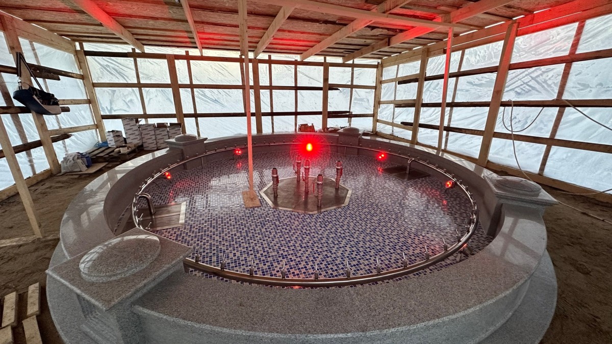 На данный момент завершены основные работы постройки и отделки: отлит фундамент, установлена чаша фонтана, отделанная мозаикой, а также проведены необходимые коммуникации и установлено оборудование для распыления воды. Так как проектом занялись заранее, весной останется только завершить пусконаладочные работы и запустить фонтан.